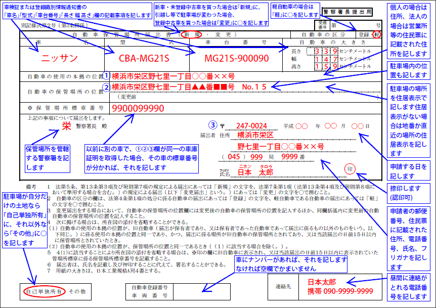 - 残置車輌のナンバーを警察署に申告しないと車庫証明の交付が遅れます。